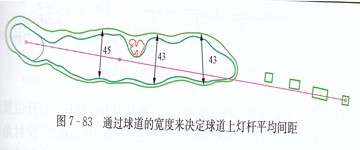 球道平均寬度的最大值決定球道寬度(見圖7-83),通過球道寬度來決定球道上燈桿平均間距。