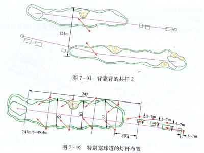 當(dāng)該距離超過110米時(shí),最好使用兩根獨(dú)立的燈桿分別給球道提供照明。(見圖7-91)