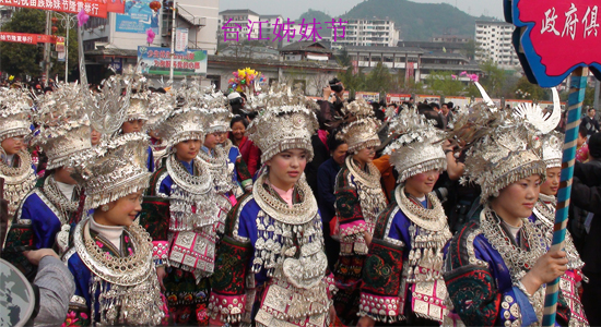 云貴高原地形地貌引人注目,穿山越洞,斷層谷地,桃花紅,李花白,油菜花金黃,梯田層層,牛羊滿山坡,那刀耕犬種的原始生態(tài)令人向往。還有那吊腳樓、苗族歌舞、銀器服飾、社飯、小吃等回味無窮。特別是邂逅那場臺江姊妹節(jié),苗哥苗妹們那原始生態(tài)型的歌舞表演,他們把服飾文化和悠遠(yuǎn)流長的歌舞揉為一體,令人驚艷!感受到了苗族文化的深厚而久遠(yuǎn),就像這高山悠洞一樣,奇特而優(yōu)美,經(jīng)久不衰。
