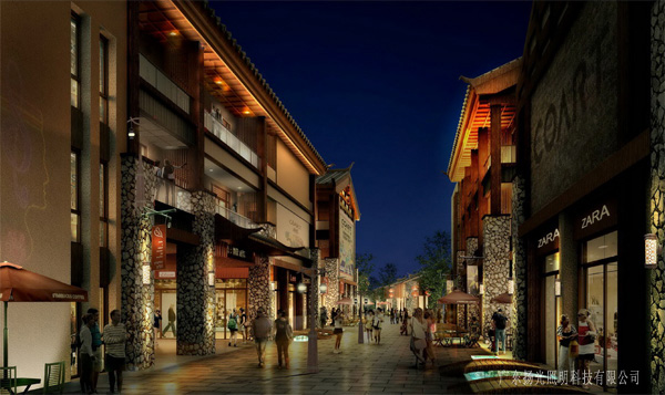 作為縱向街道通向街區(qū)的主要人氣通道,寬敞舒適,通過建筑立面的壁燈和景觀燈的結(jié)合,完成整個(gè)縱向空間的照明。
