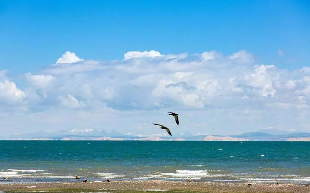 經(jīng)過日月山,到達青海湖。青海湖又名“措溫布”,即藏語“青色的?!敝?,位于青海省西北部的青海湖盆地內(nèi),既是中國最大的內(nèi)陸湖泊,也是中國最大的咸水湖。由祁連山的大通山、日月山與青海南山之間的斷層陷落形成。