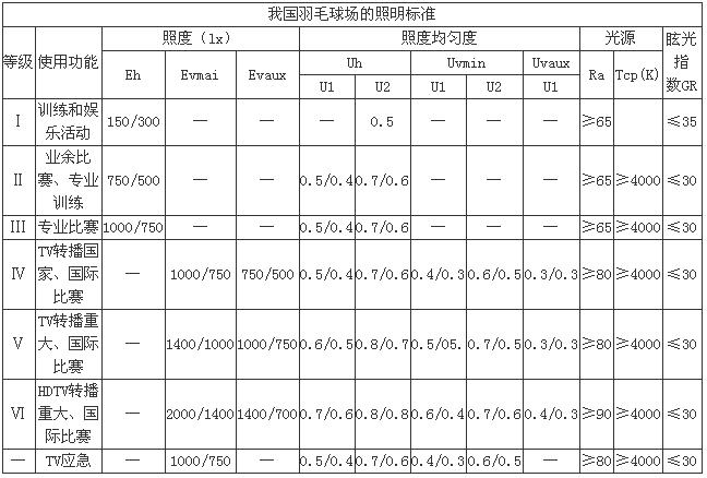 羽毛球場照明質量的影響因素