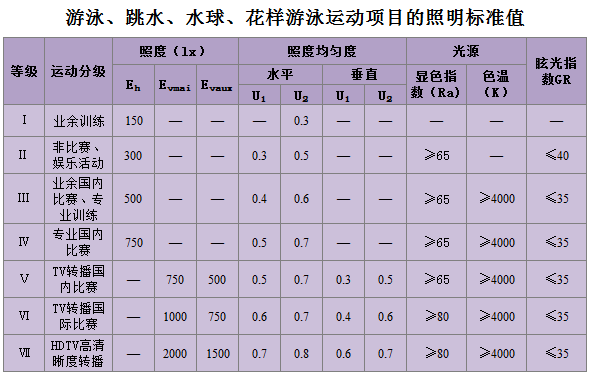 游泳館內(nèi)照明的主要目的是為場地內(nèi)每一個人提供良好的視覺條件,因此,設(shè)計要達到以下要求;