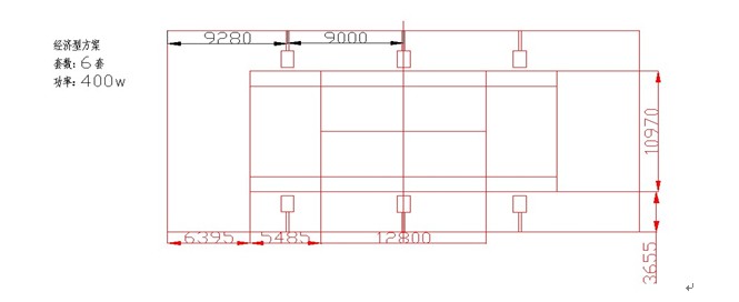 6套燈具按照均勻的原則布置,確保主要區(qū)域的照明亮度,平均照度能達到250lx以上,能滿足業(yè)余娛樂和訓練所用(主要適用小區(qū)、社區(qū)場館、學校)。