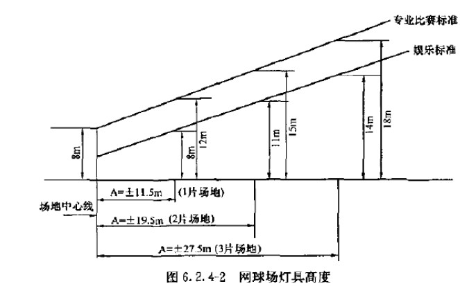 3)燈具的安裝高度,比賽場(chǎng)地?zé)艟吒叨炔坏陀?2米,訓(xùn)練場(chǎng)地高度不低于8米。