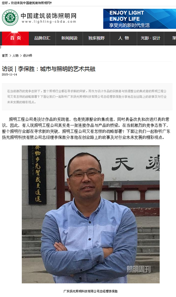 11月14日,《照明周刊》采訪了廣東揚(yáng)光照明科技有限公司總經(jīng)理李保勝。李總對(duì)和《照明周刊》記分享了他創(chuàng)業(yè)路上的故事及公司末來(lái)發(fā)展以及行業(yè)的發(fā)展前景。