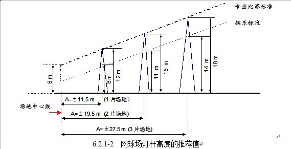用于一般娛樂的網(wǎng)球場,其燈桿安裝高度至少為8m。