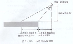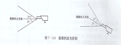 嚴(yán)格控制對(duì)攝像機(jī)的眩光。即不得向主攝像機(jī)視野反射靜水表面的光,燈具發(fā)出的光線也不得直接投向固定攝像機(jī)。如不直接照射以固定攝像機(jī)為中心的50°扇形區(qū)域則更為理想。如圖7-143